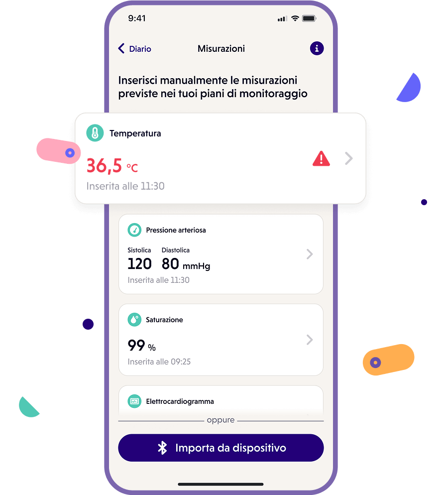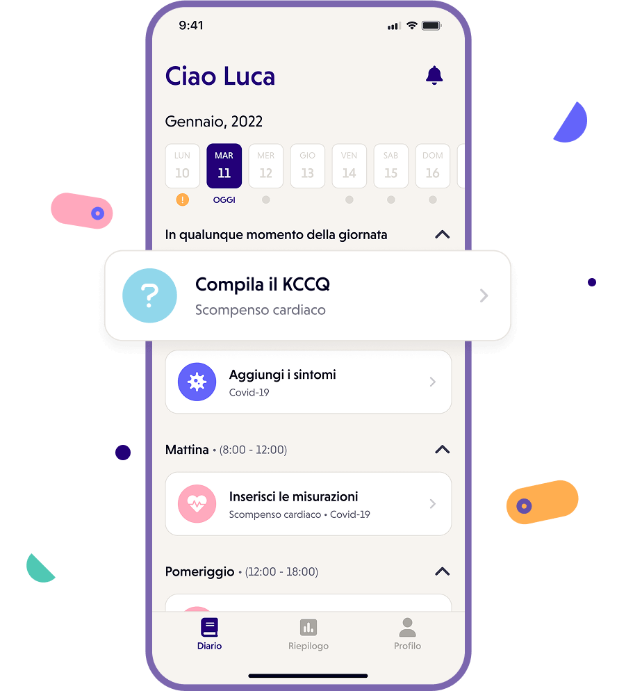 Suggerisci un calendario di attività per gestire una condizione medica. I pazienti riceveranno notifiche per monitorare i parametri vitali, rispondere a questionari o caricare referti di esami.